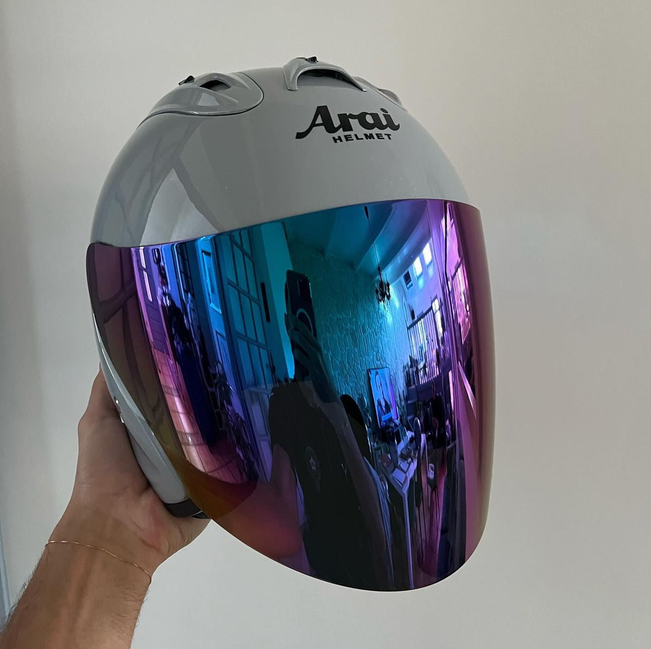Protégez-vous avec élégance grâce à ce casque jet Arai au design moderne et épuré. Sa finition noire brillante et sa visière teintée offrent un look dynamique tout en garantissant une excellente protection contre le vent et le soleil.